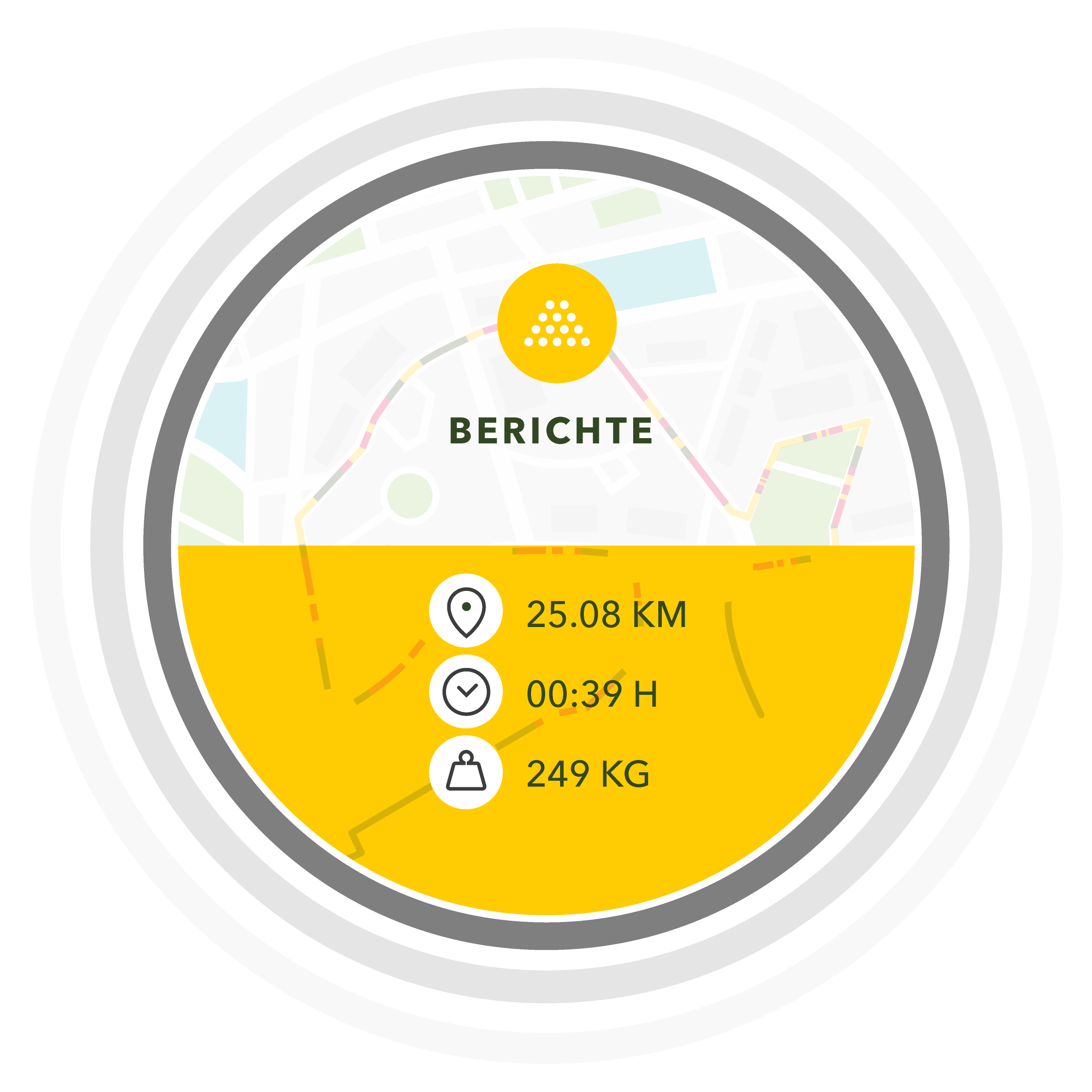 Darstellung auf einer Karte aller oder Teils Ihrer Fahrzeuge, dessen Bewegungen, gefahrene Strecken usw.