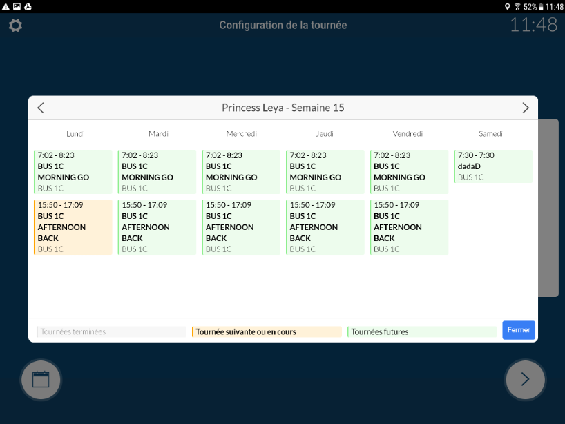 Chaque chauffeur a un accès individuel à ProvaBUS Mobile, ce qui signifie qu'il n'aura accès qu'aux données des tournées qu'il doit connaître. Avec notre nouveau ProvaBUS Mobile 1.11, le chauffeur voit ses tours quotidiens et hebdomadaires complets n'importe où et n'importe quand. Son horaire est mis à jour en temps réel directement depuis le bureau du responsable des transports. Il peut ajouter/supprimer ou modifier n'importe quelle tournée à tout moment, afin d'optimiser le temps et le coût de son bus/chauffeur.